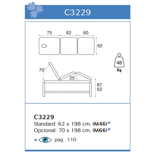 Design e funções técnicas: duas características que se encontram combinadas na marquesa C3229, excelente modelo provido de qualidades ímpares que vai certamente proporcionar as melhores massagens aos utentes.